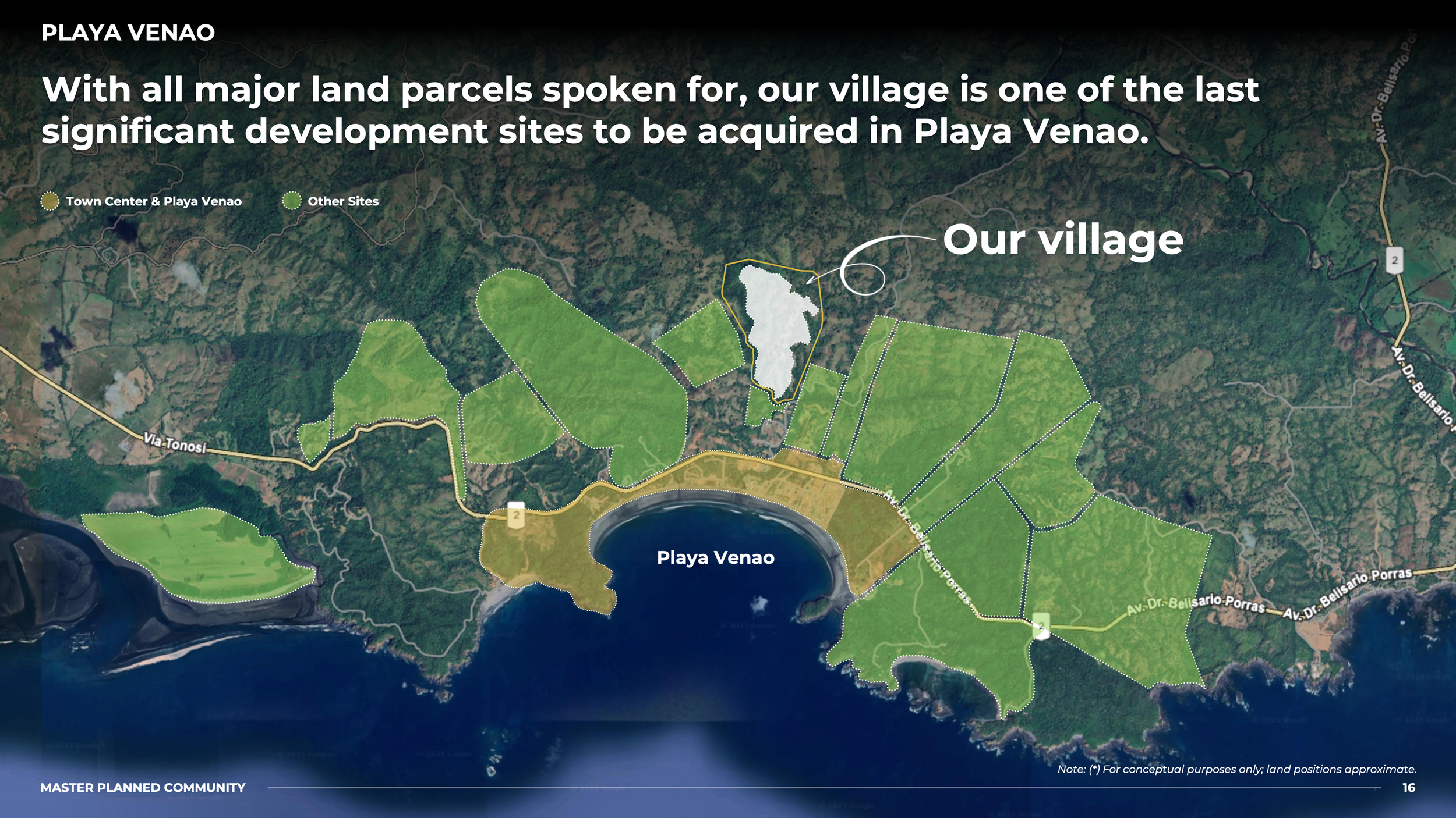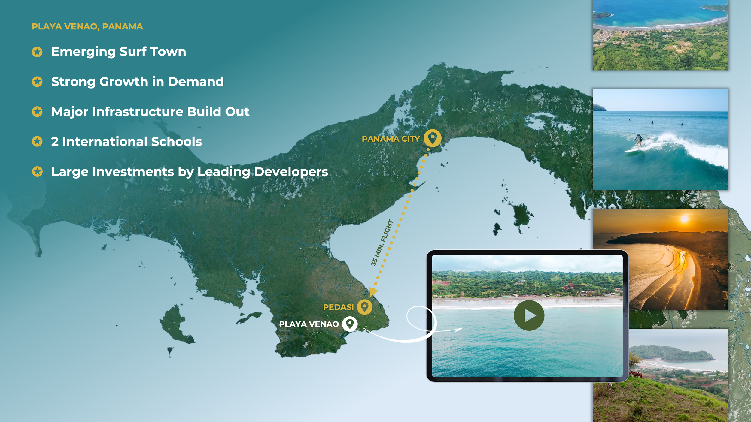 Playa Venao is one of the last surf towns in Latin America following the trajectory of Nosara and Santa Teresa - and one of the last significant development parcels just got secured. Two founders with backgrounds in technology and entrepreneurship engaged us to build the investor presentation for an $8M equity raise to fund a phased master-planned community on the site. The deck covered the macro case for Panama, the Venao market, the master plan across residential, commercial, and civic zones, three-scenario financial projections targeting a 23-40% IRR and 3.4-7.6x multiple, and a capital structure built around recycled sales proceeds to minimize equity dilution.