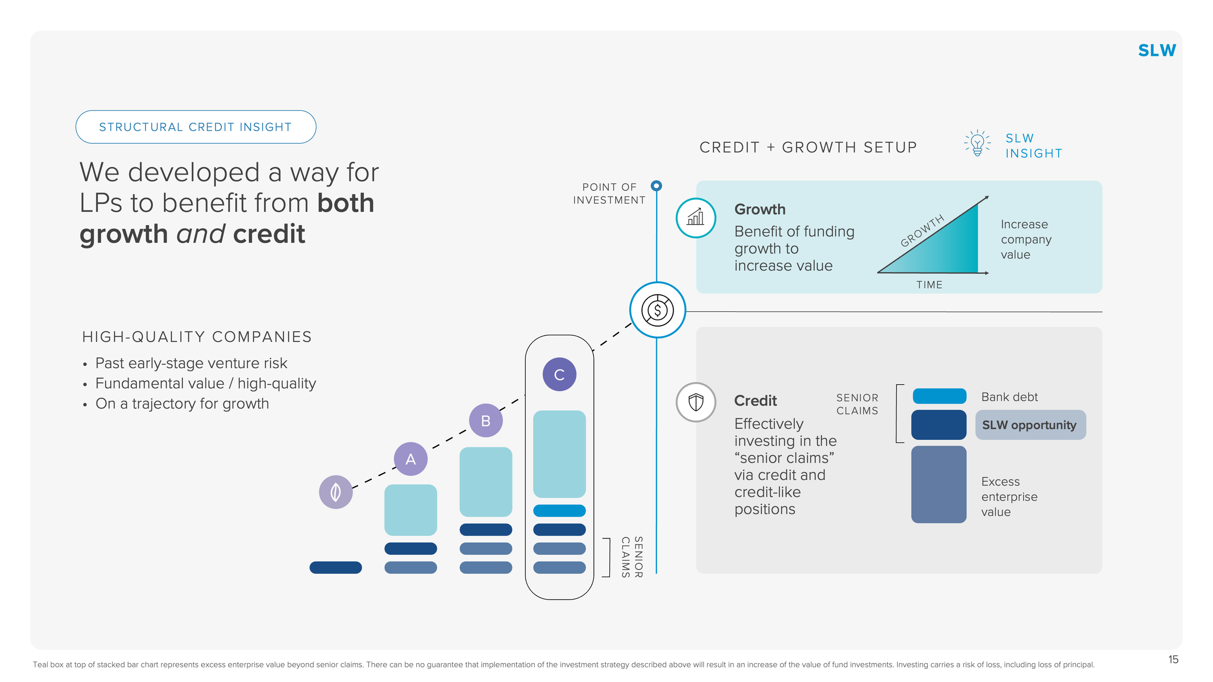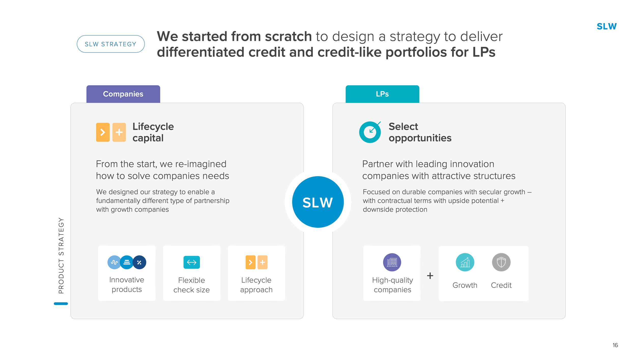A US-based growth credit fund - with over $1B deployed across three funds since 2011 - needed to redesign a set of existing investor presentation slides. The brief covered multiple layout variations for new slides. Each slide was delivered in multiple options, varying in table scale, visual style, and color treatment, giving the client a clear range to choose from while keeping every option consistent with their established brand language.